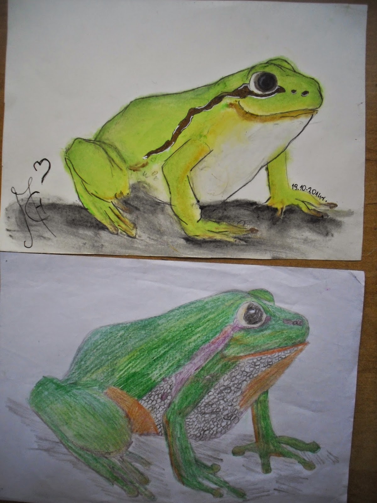 Już kiedyś rysowałam taką żabkę macie porównanie dzisiejszego rysunku z rysunkiem z 2012 trochę chyba jednak podszkoliłam swoje zdolności :)